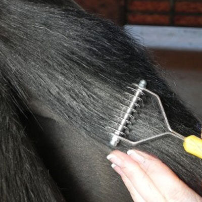 Use evenly down the sides of the tail starting at the top and working down, blend into a tapered look towards the end of the dock. Dampen down and tail bandage for an hour or so to smooth the hair.